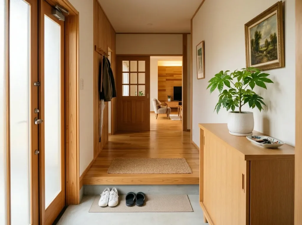 玄関はすべての運気が入ってくる「気の入り口」です。ここが暗いと悪い気が溜まりやすいため、パッと明るい印象にするのが鉄則です。