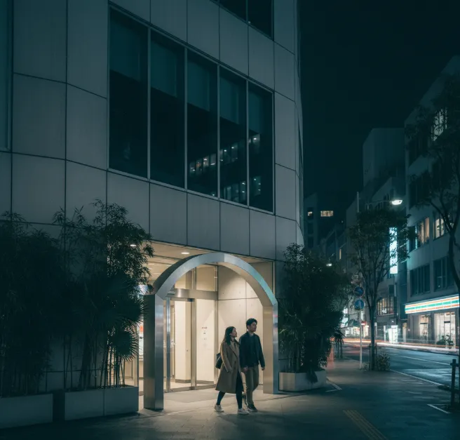✧ 暗い入口では来訪者に不安や寂しさを与えてしまいます。 しかし、やわらかな光で照らされたエントランスは「入りやすい」「ここは信頼できそう」という安心感を自然と与えます。 夜でも明るさが確保されることで安全性も高まり、商業施設や店舗に訪れる人々に心地よい第一印象を残すことができます。