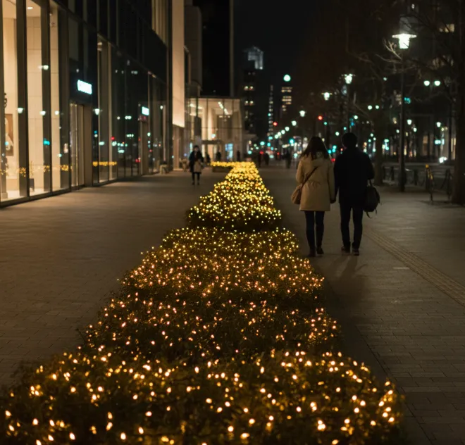 ✧ センスある装飾は「この施設はきちんとしている」という印象を強く与えます。 イルミネーションは一時的な飾りではなく、空間全体の雰囲気や世界観を演出する大切な要素です。 上品な光の演出は来訪者の体験価値を高め、ブランドイメージや評価を向上させ、リピーター獲得にもつながります。