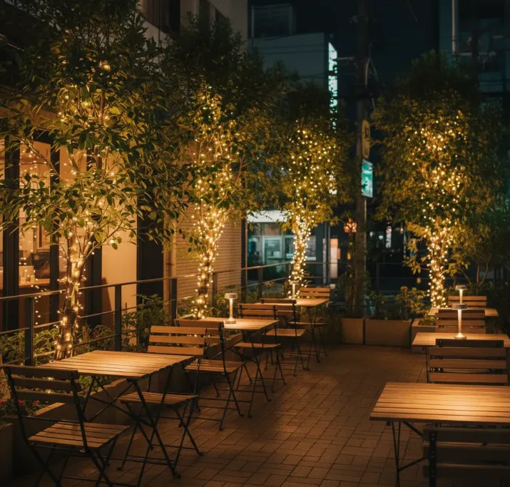飲食店やカフェ、ホテルロビーを温かく彩る店舗イルミネーション設置。手間なく業者に任せられる施工で、安心感と特別感ある空間をつくり集客や満足度を高めます。